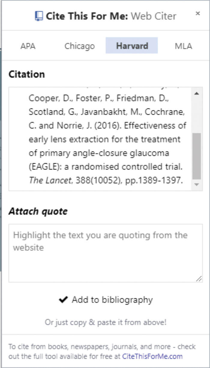 If you need to reference a website or article, especially if it is in a particular format (e.g. Chicago, Harvard etc.), there is merit in using reference manager software like Ref Works, Mendeley or the features integrated into Microsoft Word. This extension provides a quick, in browser, tool that creates the reference text in the style you want for easy copy and paste into your document. Once installed, navigate to an article or site you want to reference and then activate the tool from the Chrome bar (Figure 2).