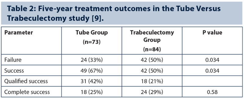 9. Gedde SJ, Schiffman JC, Feuer WJ, et al; Tube versus Trabeculectomy Study Group. Treatment outcomes in the Tube Versus Trabeculectomy (TVT) study after five years of follow-up. Am J Ophthalmol 2012;153(5):789-803.