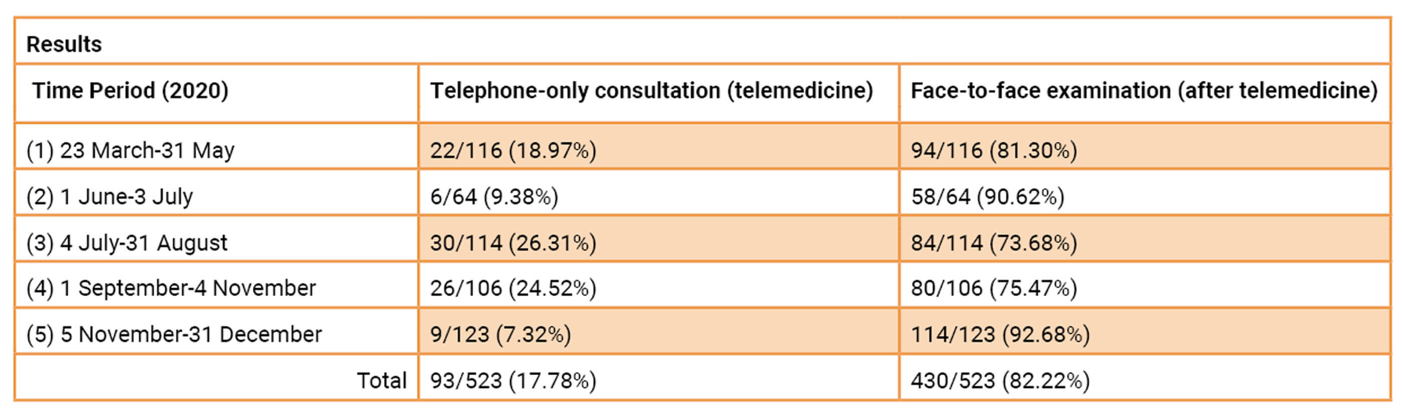 Table 3: The number of patients that were managed remotely via telephone consultation,