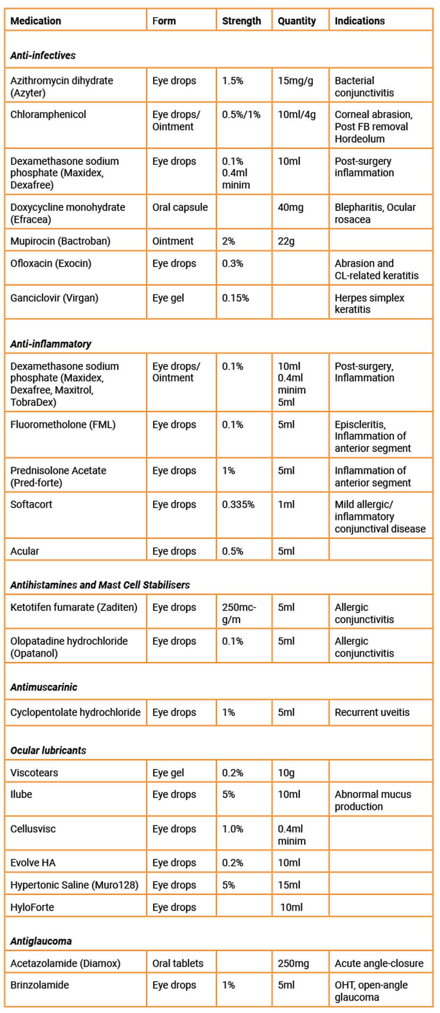 Table 1: The ocular therapeutics used at BBR Optometry by IP-optometrists,