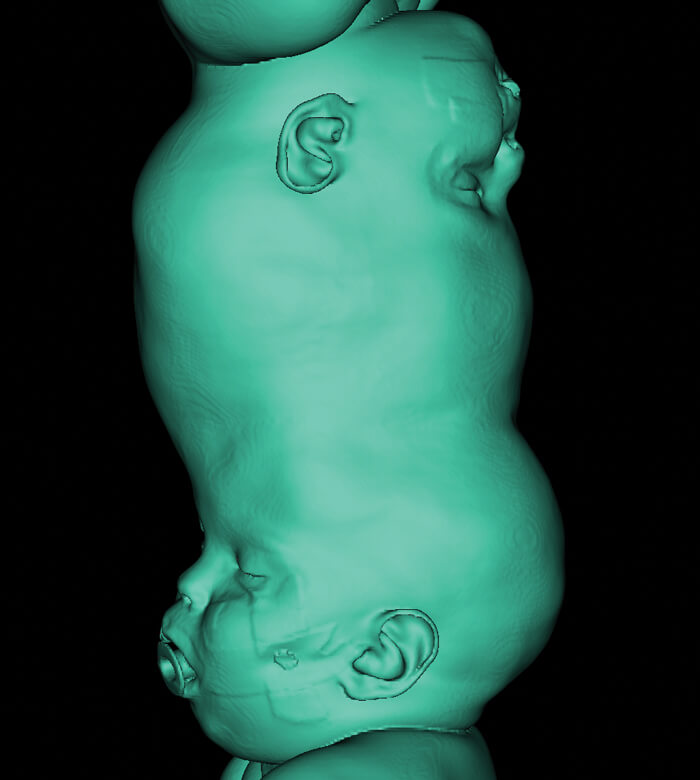 Figure 1: Three-dimensional soft tissue reconstruction demonstrating craniopagus malformation.