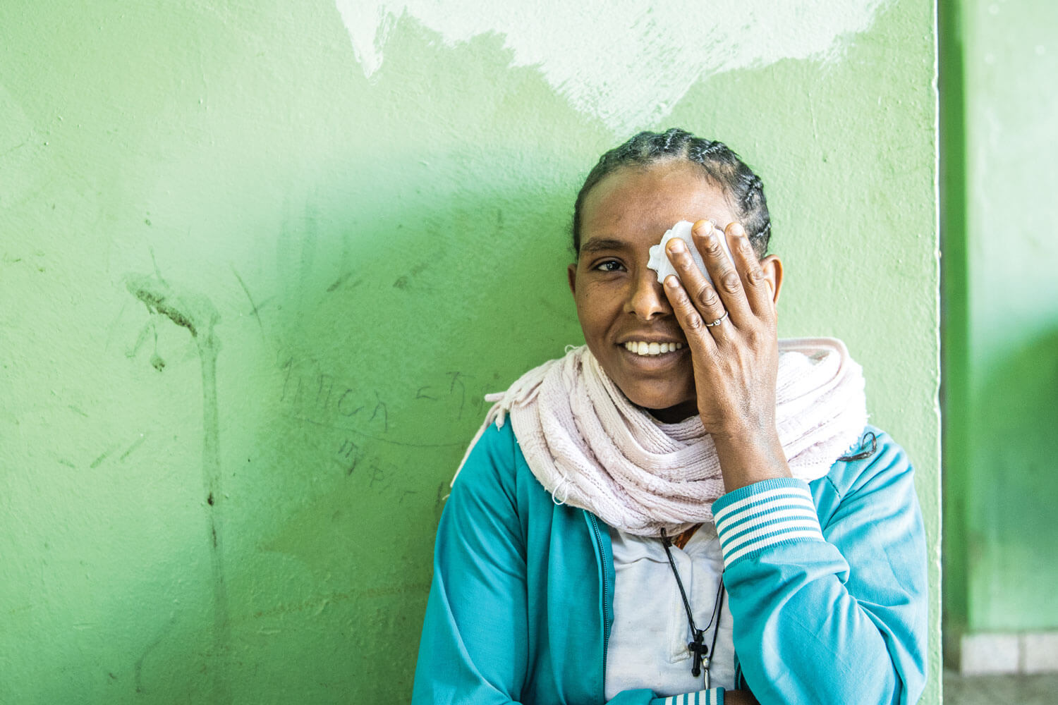 Orbis met Fikir at Worsherbe Health Centre, Ethiopia, where she had received TT surgery the week before, and was due to have her stitches out.