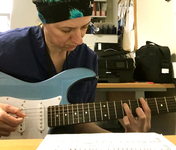 So it began. I did just over two weeks, because after that I was asked to return to ophthalmology to be first on call again. During those long residential shifts, I had to find a way to use my time productively so I brought with me my guitar and I practised. My teacher massively overestimated my abilities assigning to me: