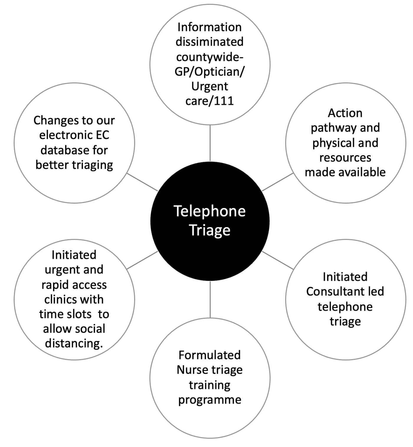 Figure 1: Changes contributing to our shift from walk-in to telephone triage Eye Casualty.