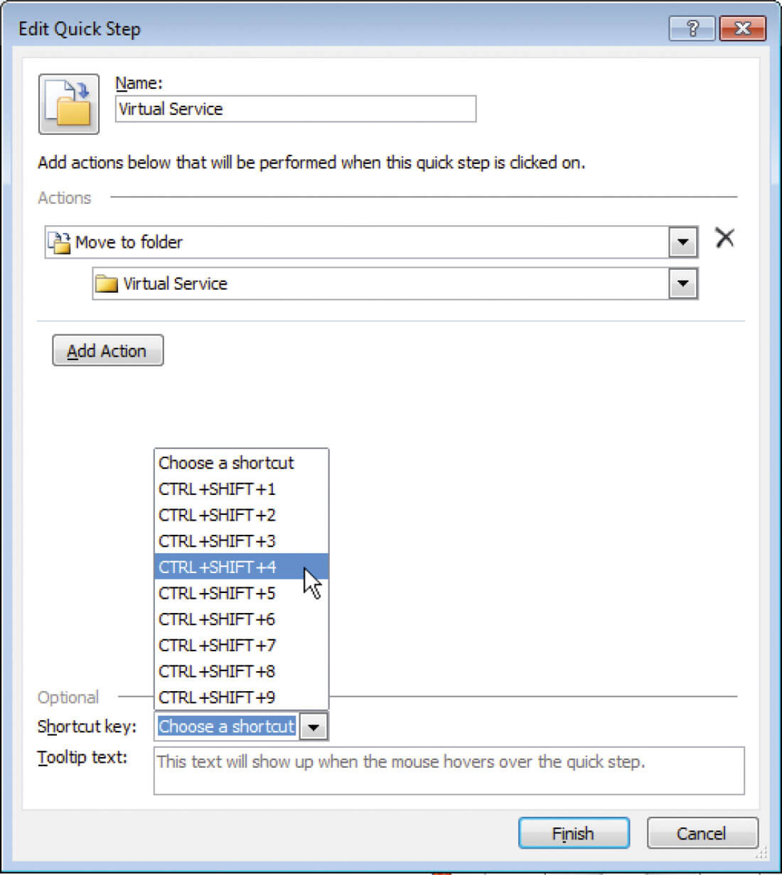 The Quick Steps panel is right at the top of Outlook in the middle of the tool bar (Figure 1). This tool allows you to save a sequence of steps and give that job a name. These saved sequences can then be run on demand. Some common uses are to move an email (or series of emails) to a pre-specified folder, or to forward the email to a particular person or group. Once the email to run the task on has been selected, the specified ‘Quick Step’ can be triggered by tapping the name in the panel or pressing a chosen keyboard combination. Get started by pressing the ‘Create New’ button and working through the box that appears (Figure 2).