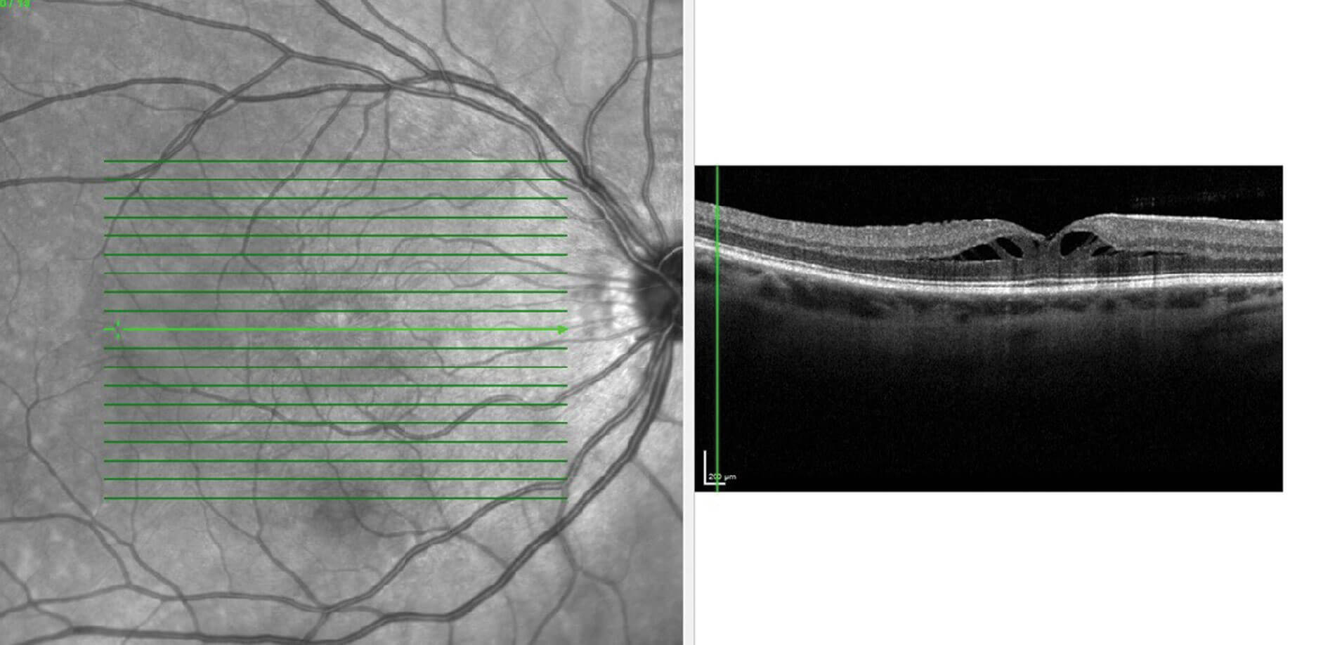 Figure 3: OCT macula of the right eye with foveal schisis.