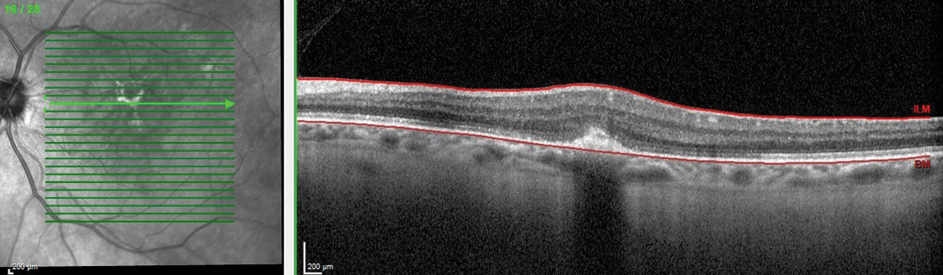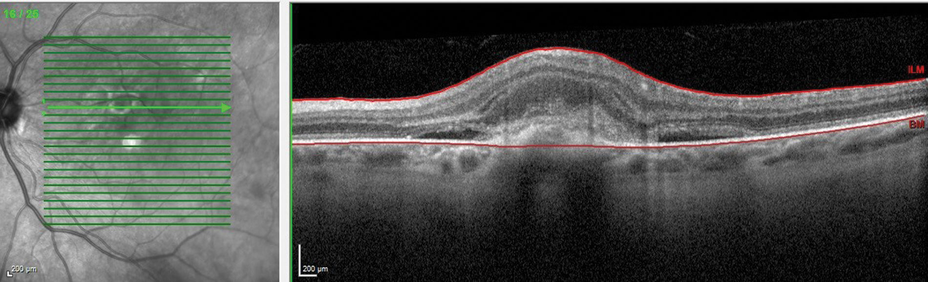 Figure 4: OCT macula showing a myopic CNV.
