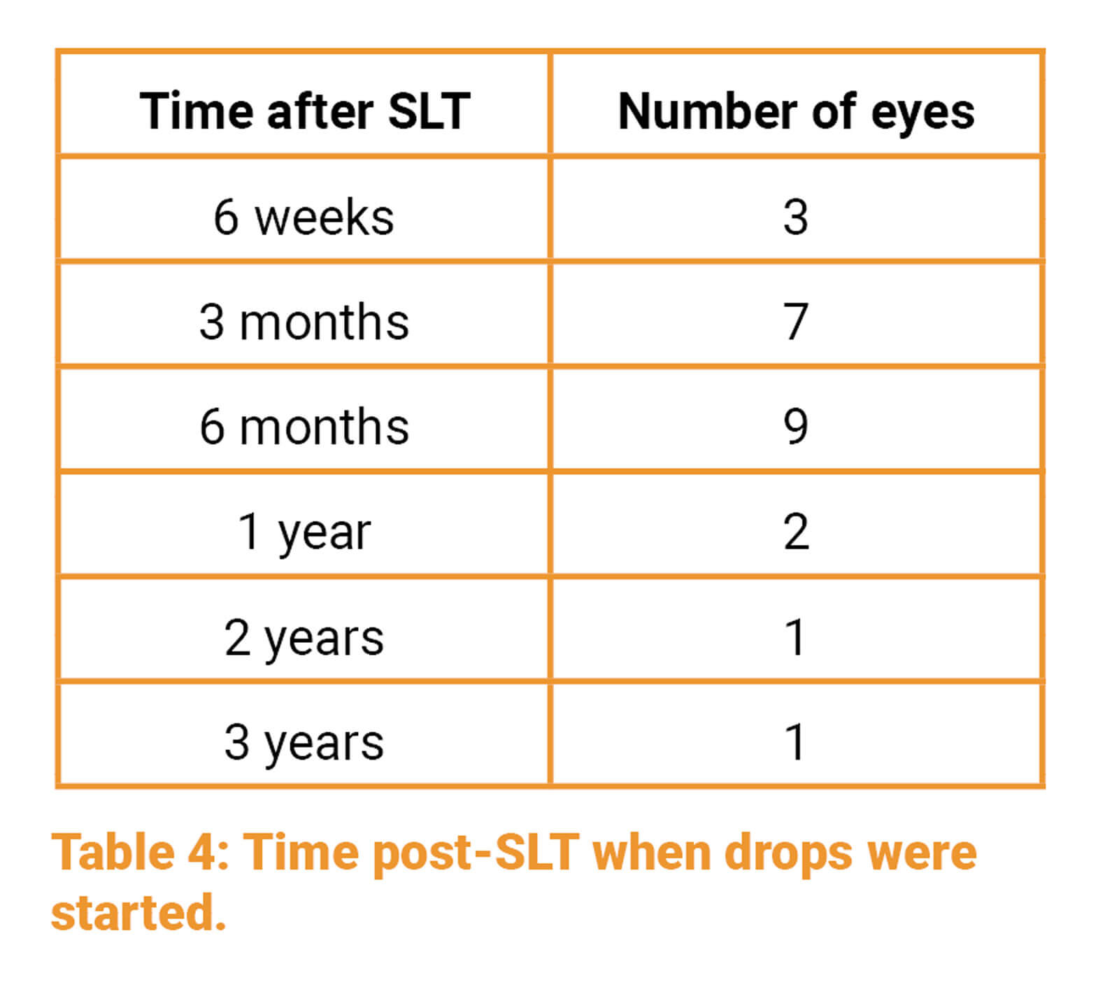 This data has allowed us to develop a local protocol to standardise the primary management of OHT by our glaucoma service. This protocol recommends the use of SLT as a first-line treatment for the management of OHT.