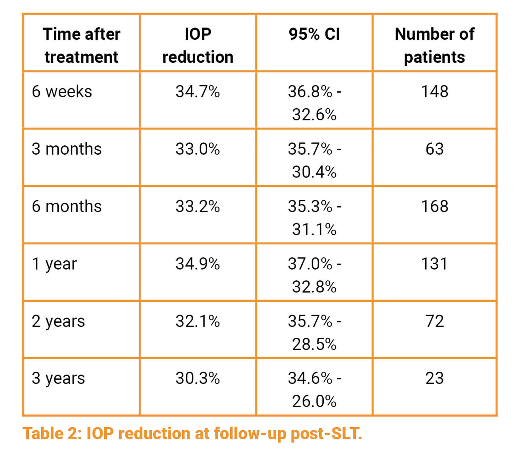 - SLT is effective at reducing IOP by up to 30%, even at three years after treatment.