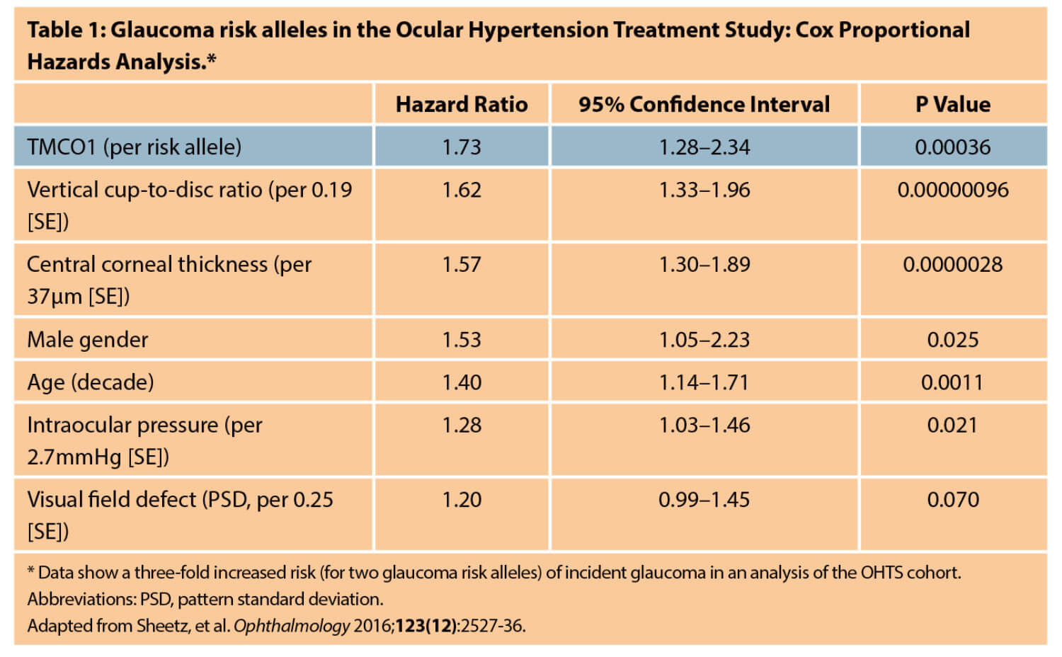 Anthony Khawaja explained that genetics underlies IOP variability between individuals and that developmental and anatomical factors are important. Lymphangiogenic factors represent a potential treatment target. Collectively, loci have predictive value for primary open-angle glaucoma (POAG), underscoring the potential for targeted screening and prevention of late presentation with timely therapy [12]. Susan Williams, University of the Witwatersrand, Johannesburg, South Africa, said she believes that genetics will herald an era of precision medicine involving customised care for POAG, as new insights improve understanding of disease pathogenesis and the genetic factors that affect the risk of developing POAG (Table 1).