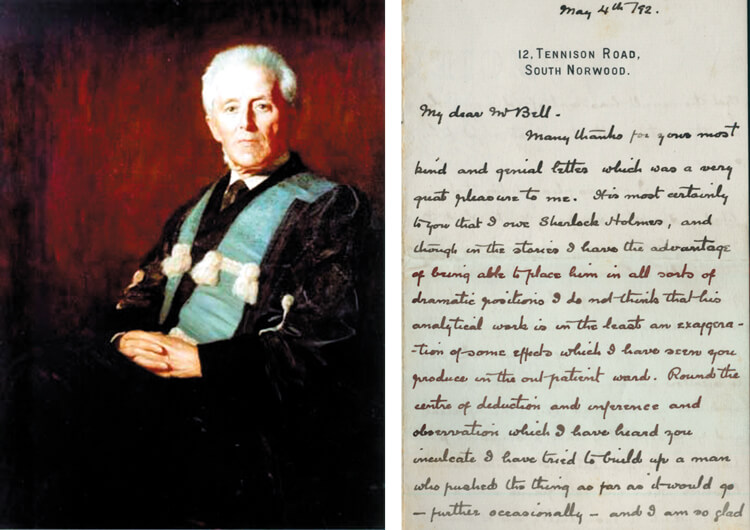 However, there can be little better primary evidence as to the sleuth’s inspiration than a letter from Arthur Conan Doyle to Joseph Bell, the lecturer who had become his friend, dated 4 May 1892, a year after a serialisation of Holmes stories in The Strand had gained national recognition. The letter, one of a set of seven held by the Library of The Royal College of Surgeons of Edinburgh states: “It is most certainly to you that I owe Sherlock Holmes, and though in the stories I have the advantage of being able to place him in all sorts of dramatic positions I do not think that his analytical work is in the least an exaggeration of some effects which I have seen you produce in the outpatient ward [7].”