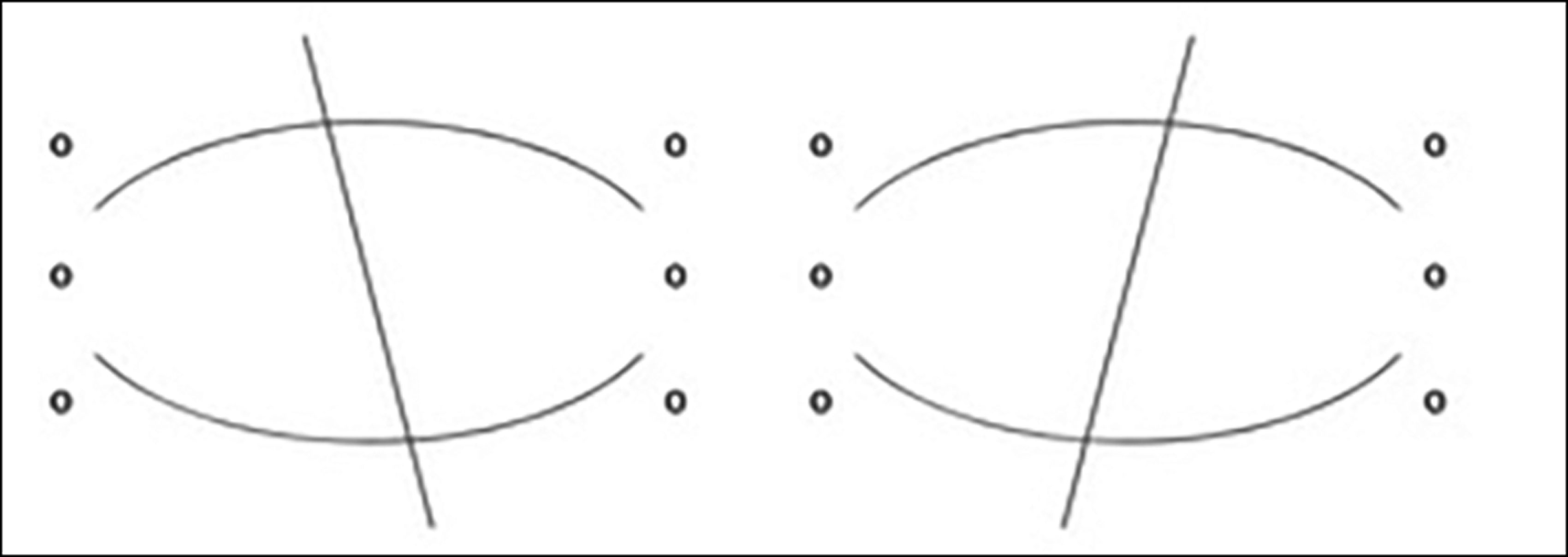 Alphabet patterns are OM patterns occasionally seen in strabismus, denoting significant horizontal strabismus changes in up-gaze compared to down-gaze. Two common types of alphabet patterns are ‘V’ and ‘A’ patterns, which can occur in both exotropia and esotropia. The choice of letter used helps to describe the phenomenon seen. In V patterns, the eyes are relatively more diverged on up-gaze, and relatively converged on down-gaze, with a >15Δ difference in deviation size [1]. An A pattern is present when the eyes are relatively converged on up-gaze and diverged on down-gaze, with a >10Δ difference [1]. They are depicted on OM diagrams with two slanting lines, in an approximate V or A shape (Figure 3).