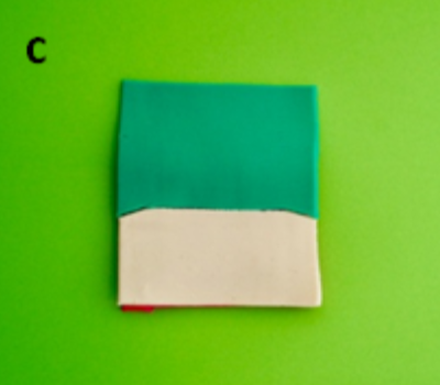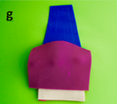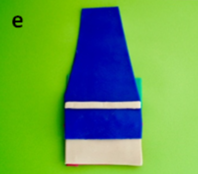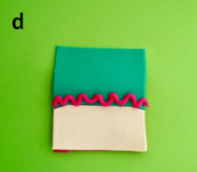 Roll out a second colour of PlayDoh® into a flat sheet and cut it so that it is the same width but vertically shorter than the conjunctiva with an arched superior border. This represents the tarsal plate (white).