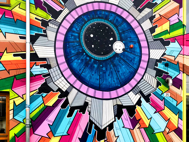 I was privileged to get correspondence from a travelling artist named Ofelia Toor Maracineanu. Born in Romania, she has lived in Italy for many years. Away from working with her clients in their homes, Ofelia says it is her relaxing hobby to paint free hand with acrylics. She said about her exhibit which took three days to create: “This eye is the symbol of all eyes that have regained light under the wonderful hands of Dr Giuliana Silvestri and is a tribute to her work in eye surgery.”