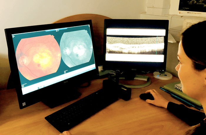 OCT moved rapidly from the research lab to being an essential part of the medical retina clinic. In most cases it replaced the time- consuming and invasive retinal angiography techniques to noninvasive in vivo imaging completed in a matter of seconds. OCT increased capacity, sped up treatment pathways and avoided the side-effects from intravenous injection for our patients, and while angiography is still necessary in some cases, many patients benefit from OCT based diagnostics. Over the last 25 years the technology has dramatically improved the resolution of the retinal images. The images OCT provides can be viewed in two or three dimensions. In response, ophthalmologists had to develop their understanding and interpretation of these images in the context of a rapidly developing area of retinal therapeutics. The availability of OCT expanded the capabilities of our retinal imaging departments and provided a cadre of healthcare professionals with training, accreditation and career pathway. Having OCT and the trained workforce allowed us to set up virtual clinics and explore the benefits of telemedicine.
