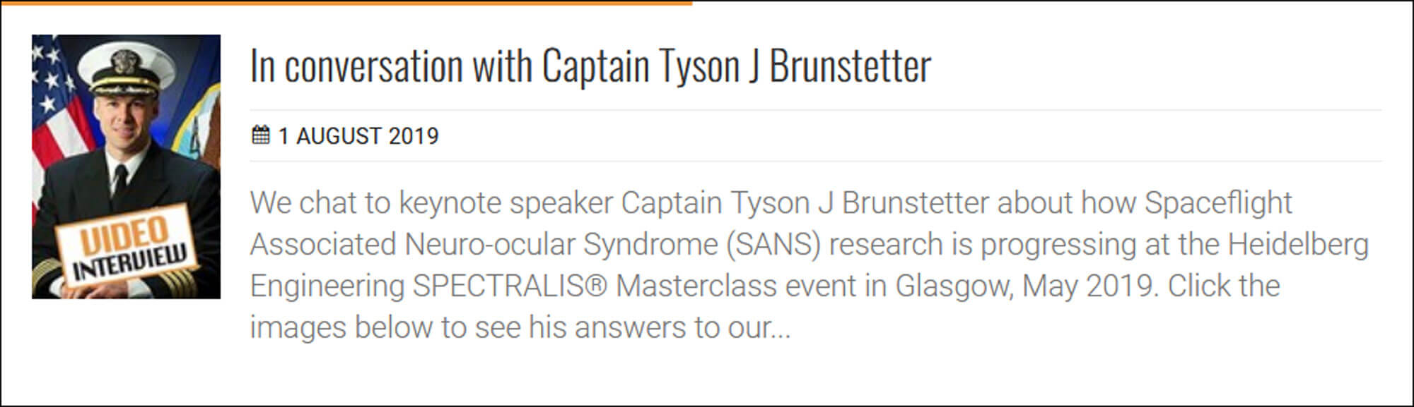 Click the box below for our interview with Captain Tyson J Brunstetter,