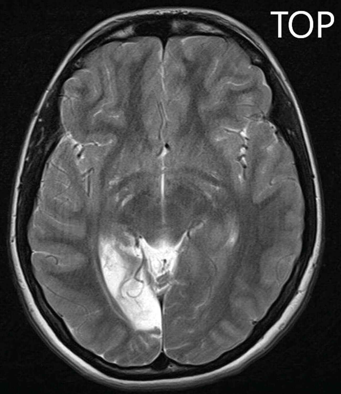 Figure 1: A T2-weighted MRI image of the patient’s brain,