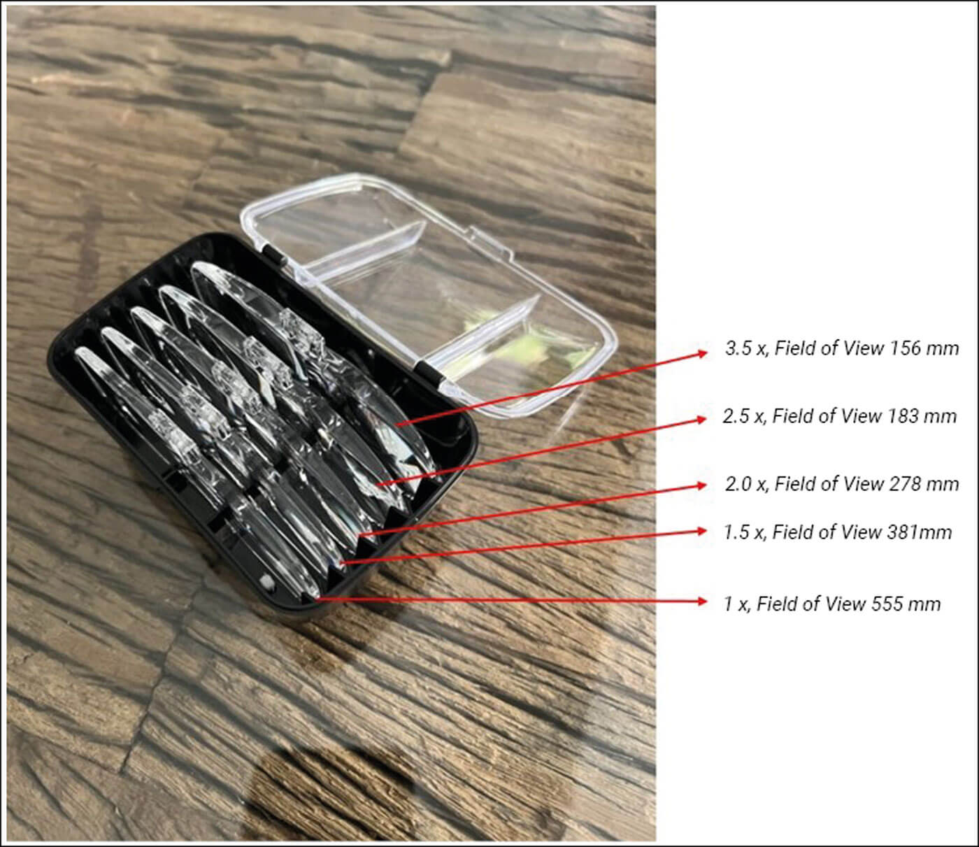 Figure 2: Lenses with magnification powers and fields of view.