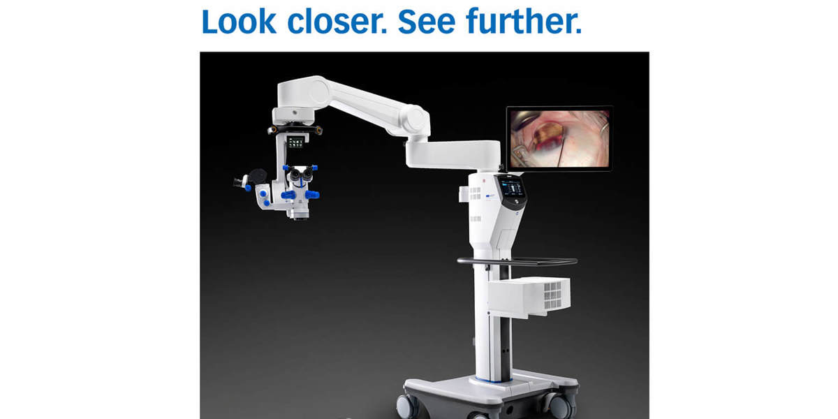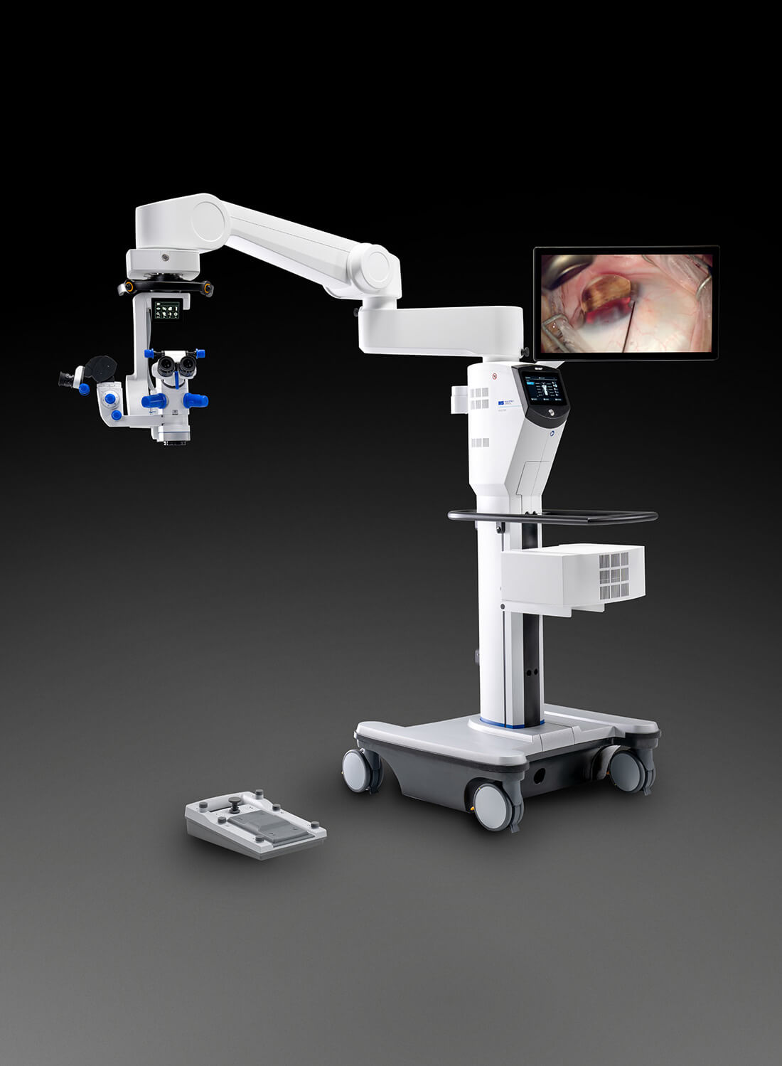 The microscope offers efficient workflow and outstanding ergonomics. The compact design maximises movement and space. With the emphasis on efficient workflow, surgeons can filter, tilt, focus, and zoom via the programmable hand and/or foot switches.