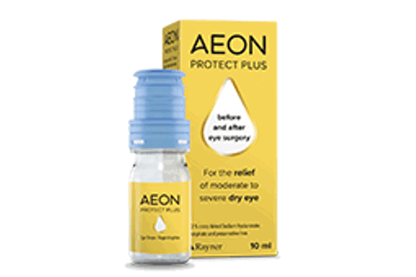 AEON PROTECT PLUS is indicated for use both before and after eye surgery, and is surgeon recommended, containing 0.3% cross-linked HA for longer lasting lubrication.