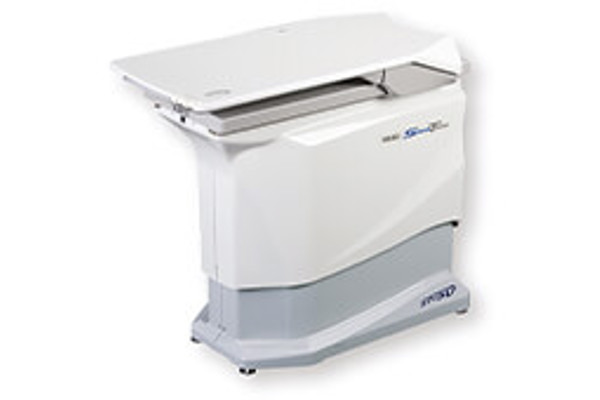 This quintessential slit lamp table features a new slide mechanism design that does not attach to the table.